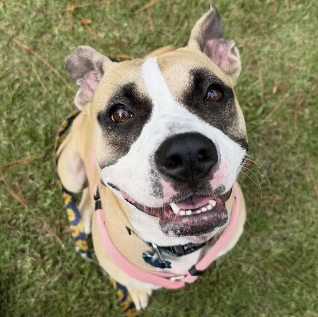 Meet Celeste! This lovely boxer mix came to us from another shelter along with her three babies, and Celeste is a sweet girl who gets along well with other dogs and walks beautifully on a leash. She’s been blossoming in our care, living her best life and starting to let her personality shine! She is known to be a bit of a fence climber, so she’d do best in a home where she can enjoy plenty of leash walks or have supervised time in the yard. Celeste is sure to bring lots of love and happiness to the lucky family who welcomes her home!
