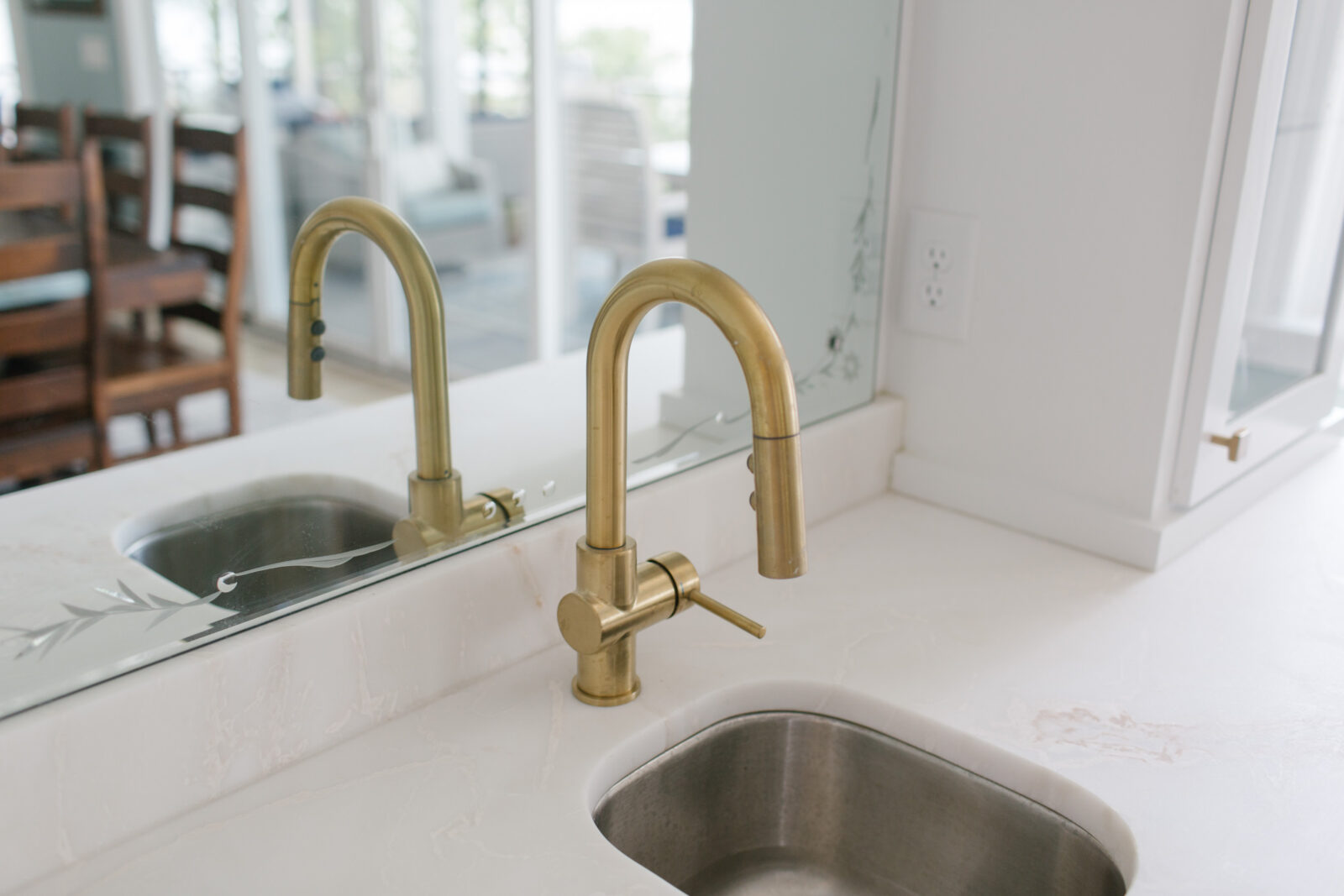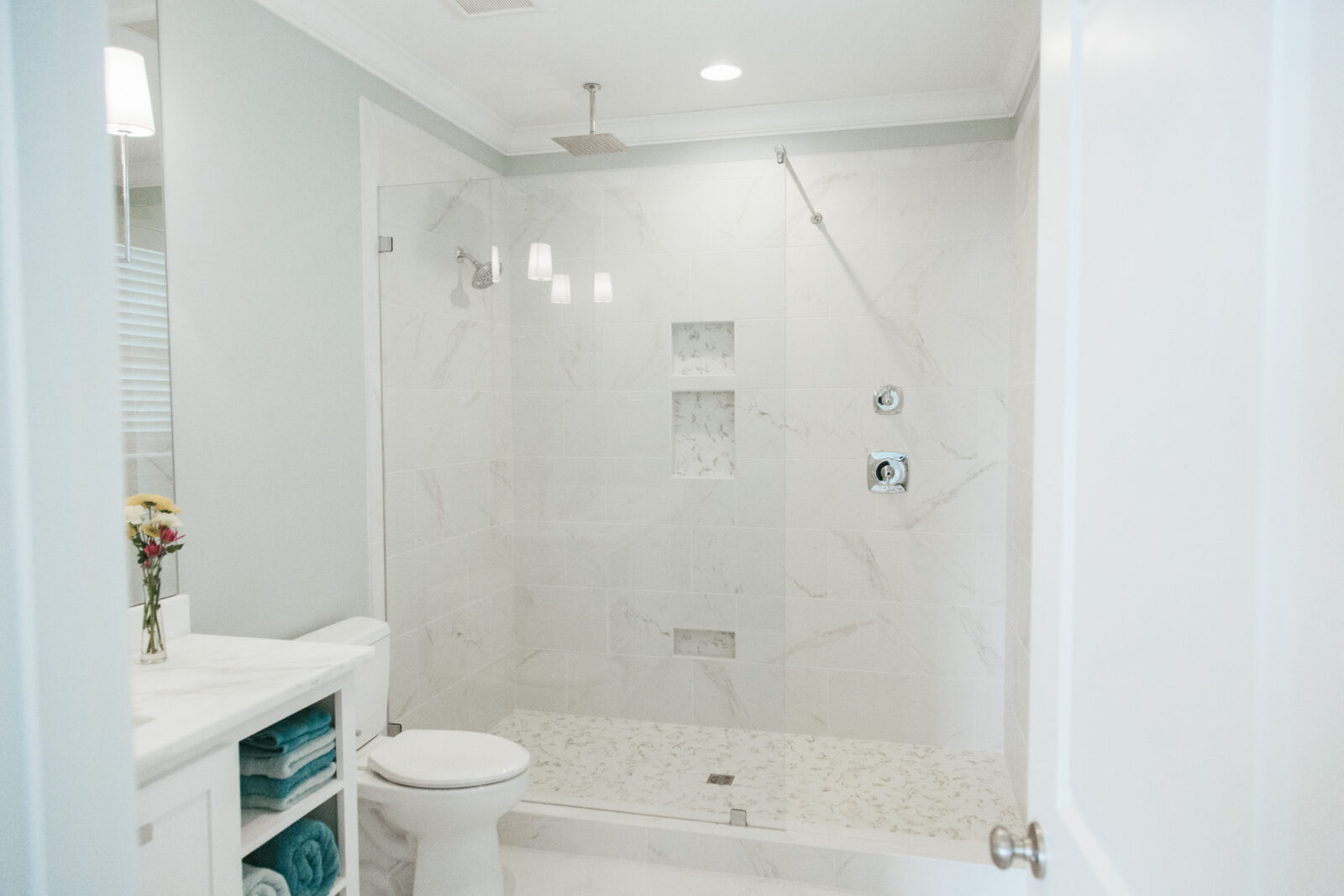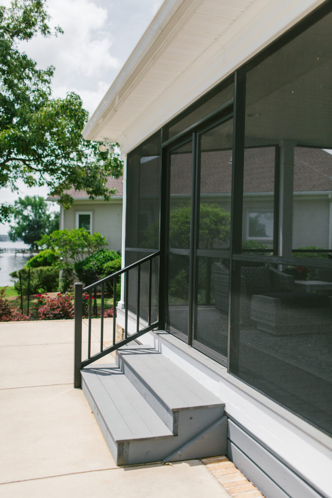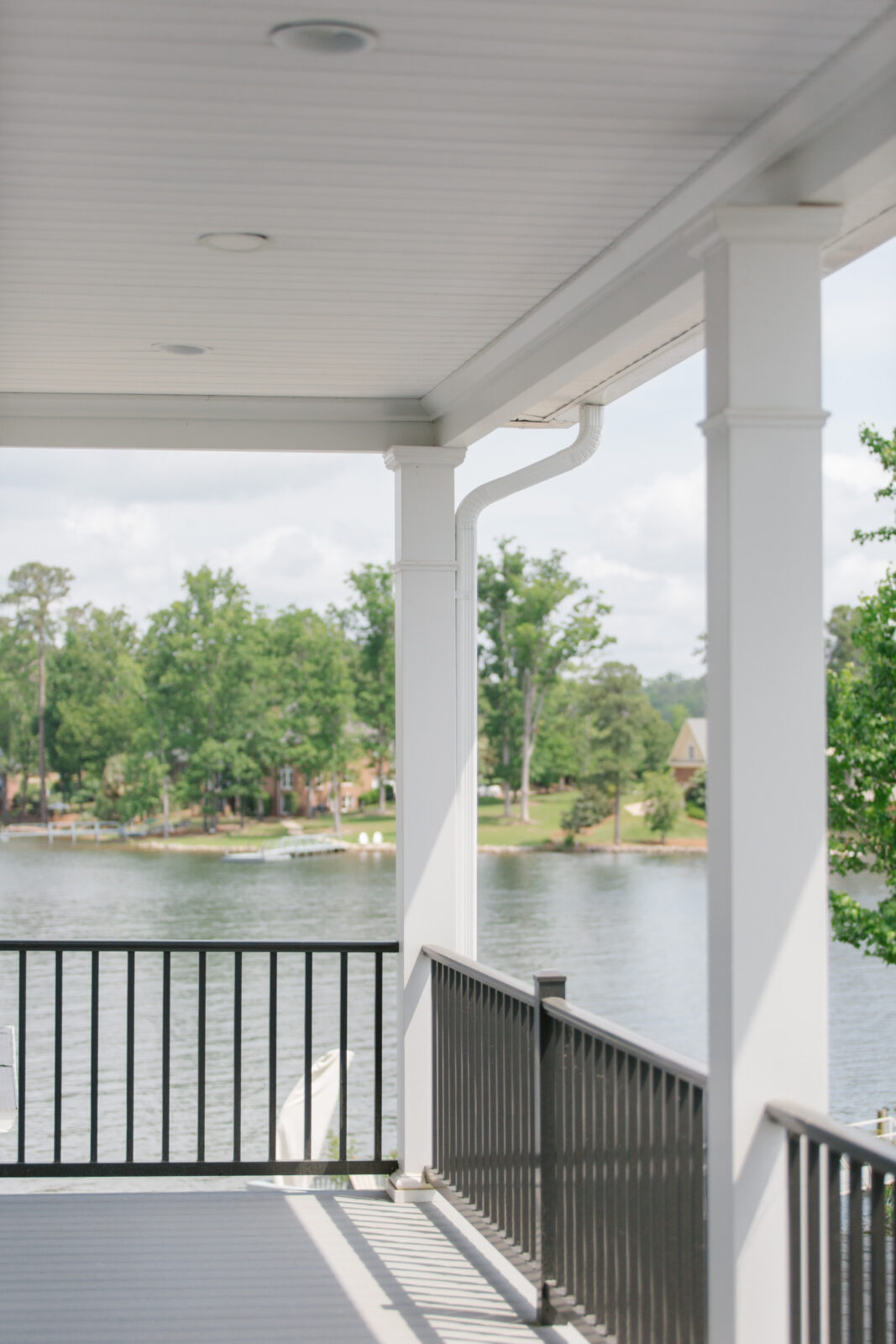 Upstairs, the client’s personal primary suite includes a large bathroom, expansive walk-in closet, a coffee bar for quiet mornings before stepping into hosting chaos, and balcony access with windows showcasing the lake from its prime point location.