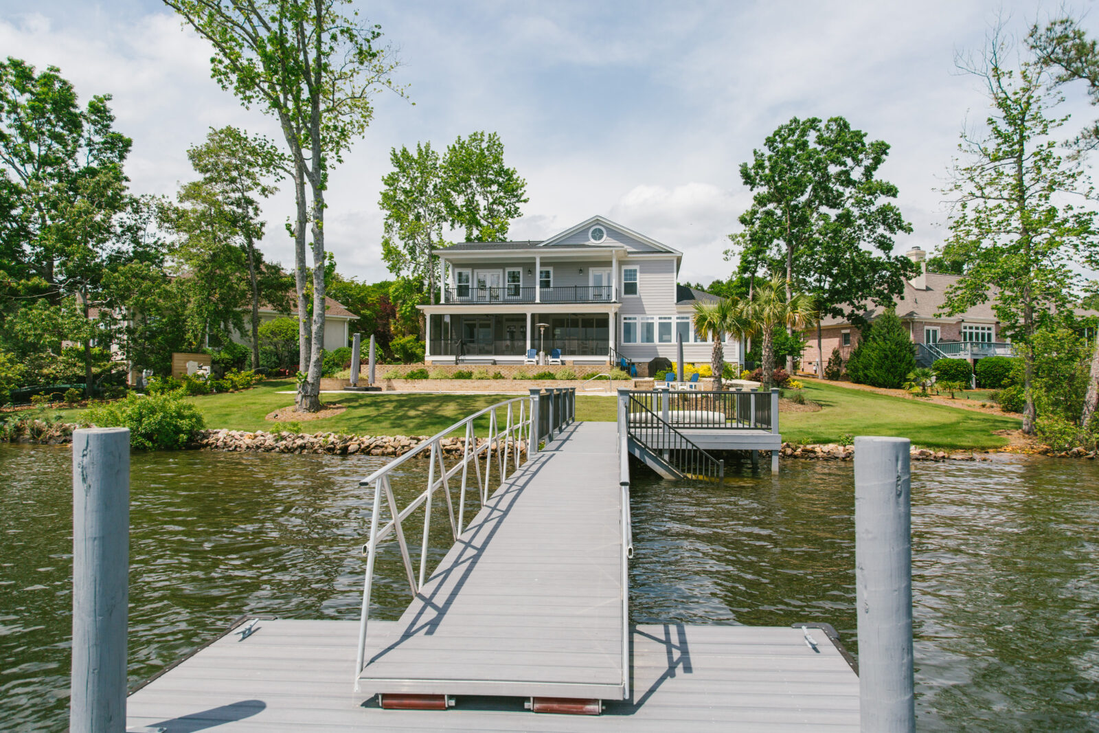 We designed a dream retirement home for a client relocating from the DC area to a beautiful lot on Lake Murray, where friends and family also bought neighboring properties many years ago with a plan for the future. With retirement just a few years away, she envisioned a warm, welcoming home centered around entertaining family and friends and the stunning lake views.